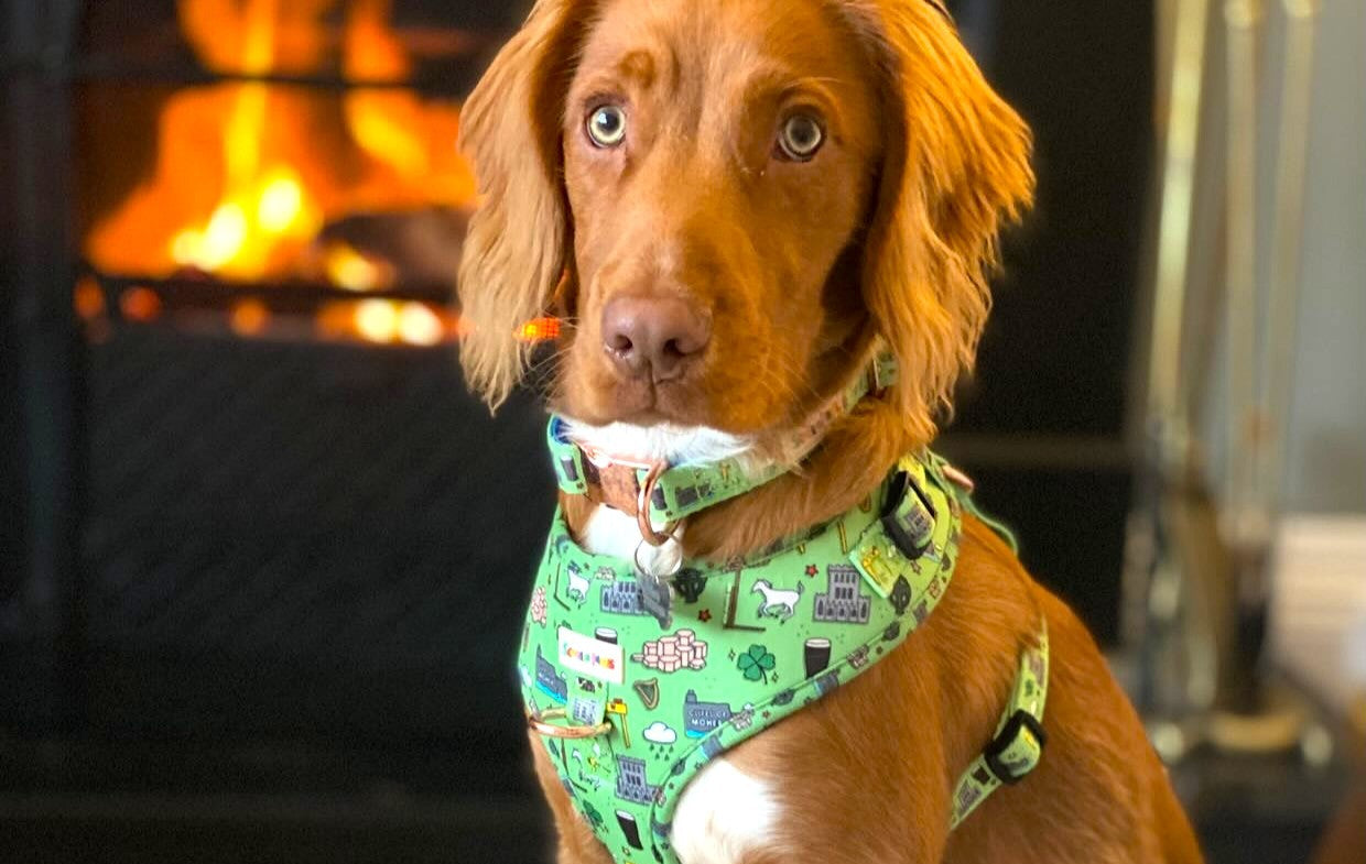 Rosie looks amazing in her tropical vibes collar, bow, lead and bandana! Even as a dairy farm dog they have all lasted so well with no signs of wear and tear at all!