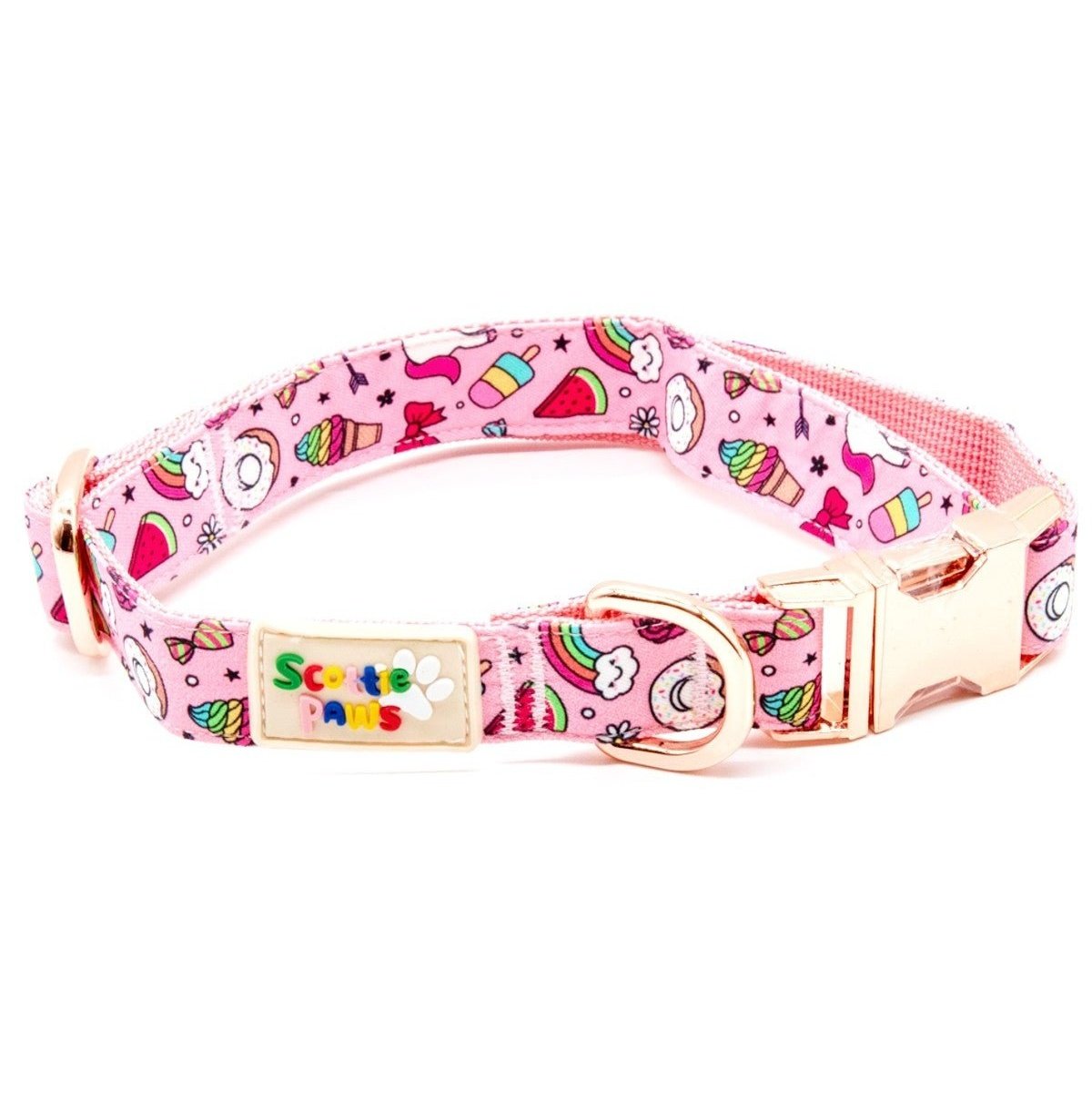 Light weight, fully adjustable collar with a luxury rose gold metal buckle.