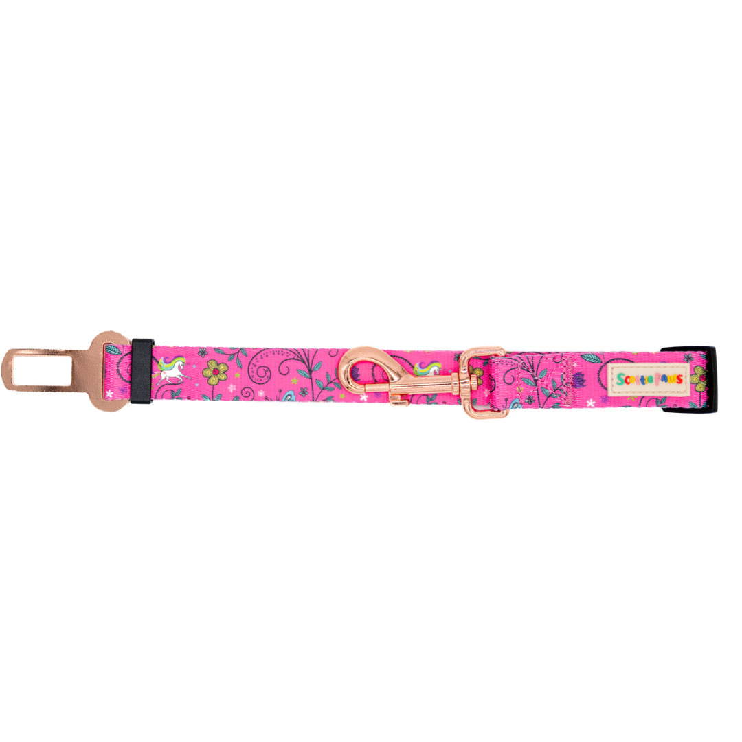 The Pink Princess designed seat belt adds a distinctive charm to your dog's accessories.