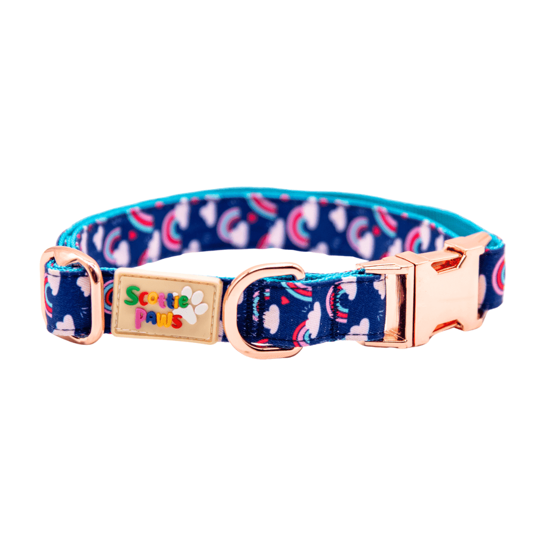 Light weight, fully adjustable collar with a luxury rose gold metal buckle.