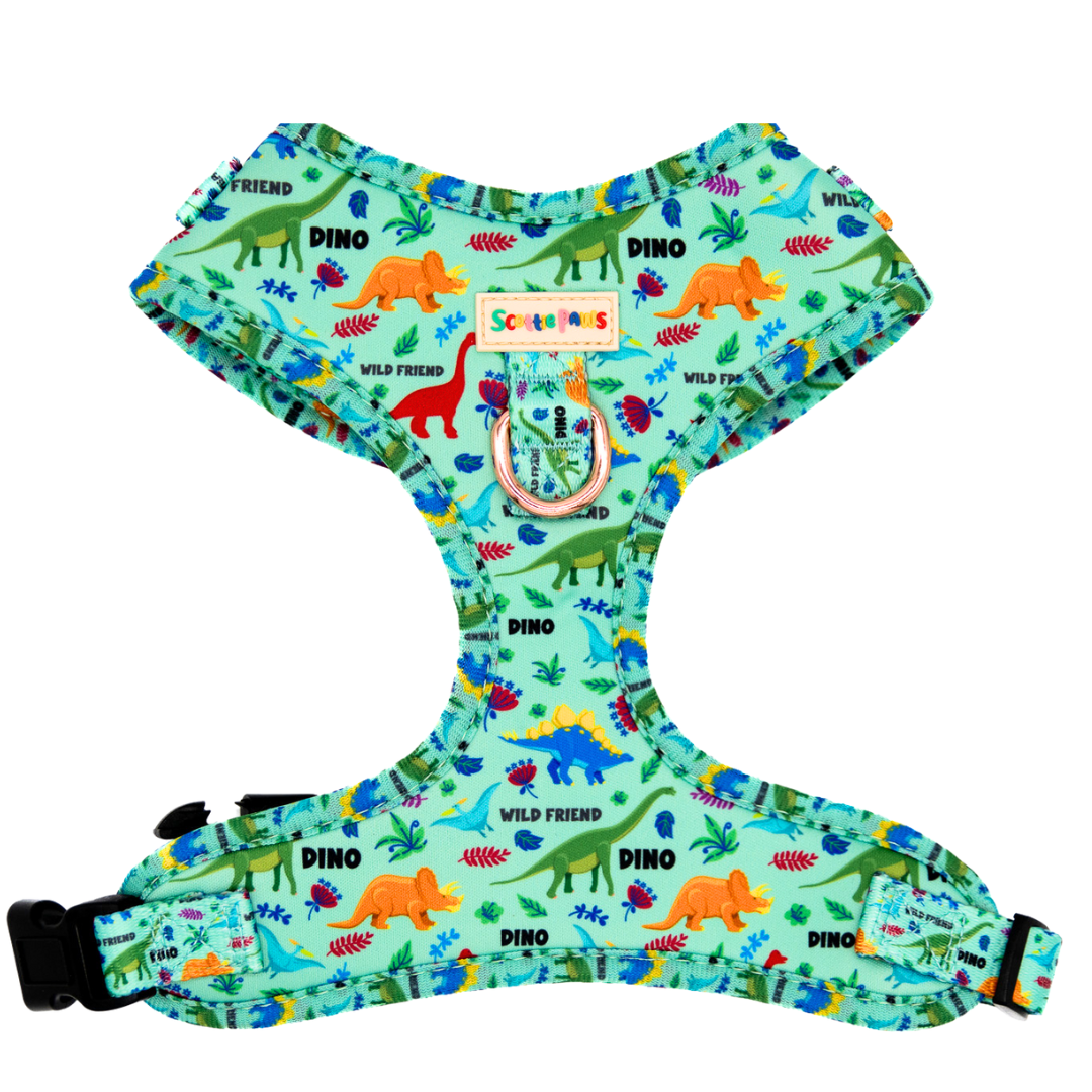 The pre-historic inspired adjustable dog harness, featuring a stylish nod to long walks. Made with high-quality materials and rose gold fastenings it is a stylish and practical choice for creating lasting memories or as a gift for any pet owner.