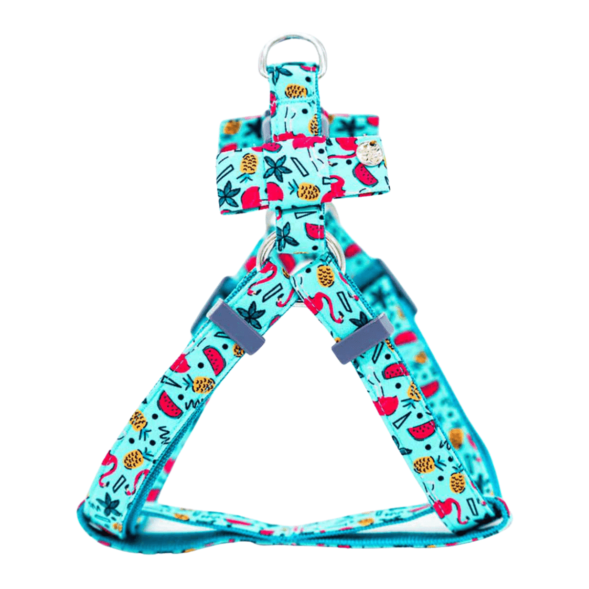 ScottiePawsPets Tropical Vibe harnesses are fully adjustable to ensure the perfect fit. With a sturdy D ring for lead attachment and a sturdy, quick securing metal clip on the lead.
