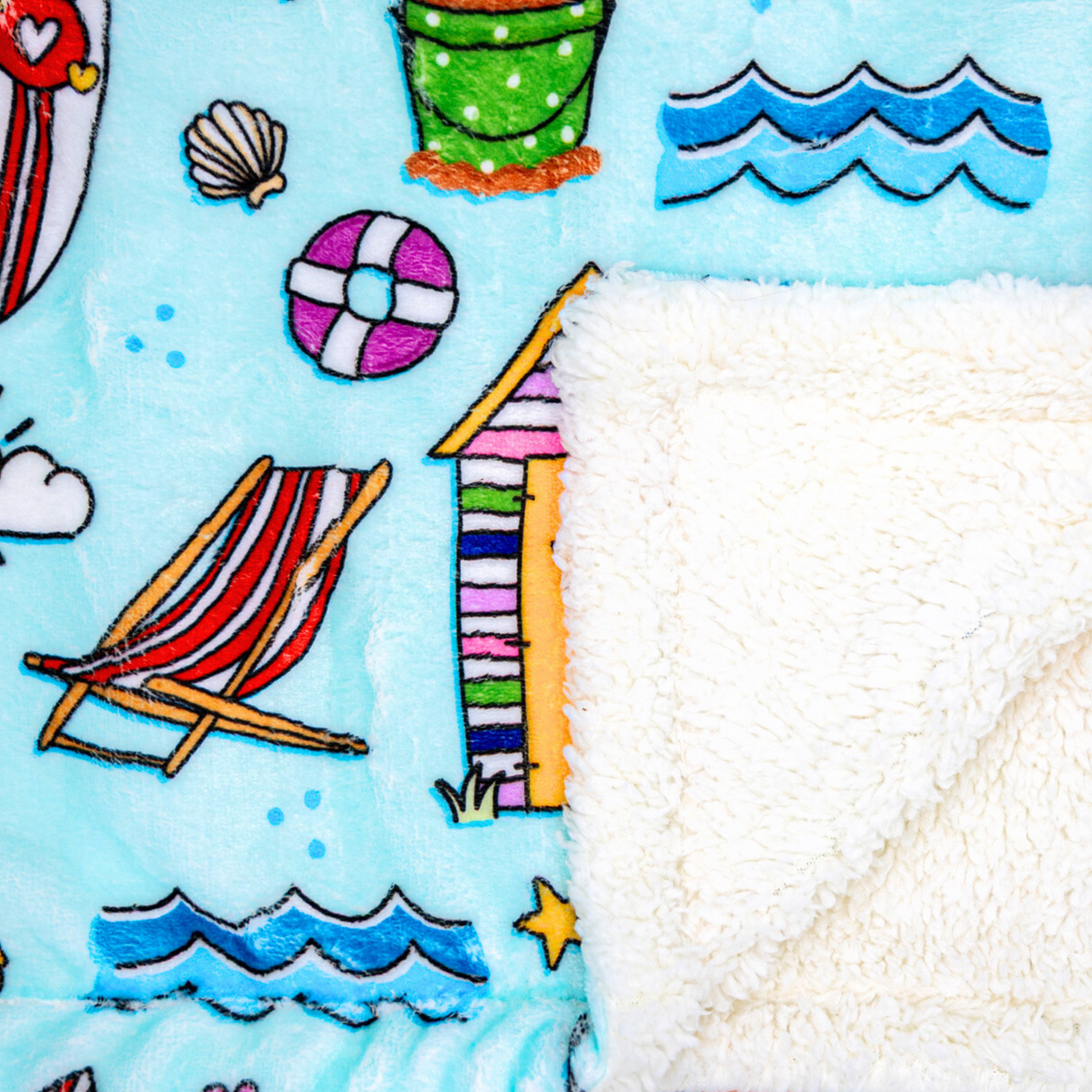 Add a touch of colour to your day with our Costal Views-themed blanket, featuring quirky designs and bright colours — perfect for cosy snuggles, exciting adventures or an ideal gift!