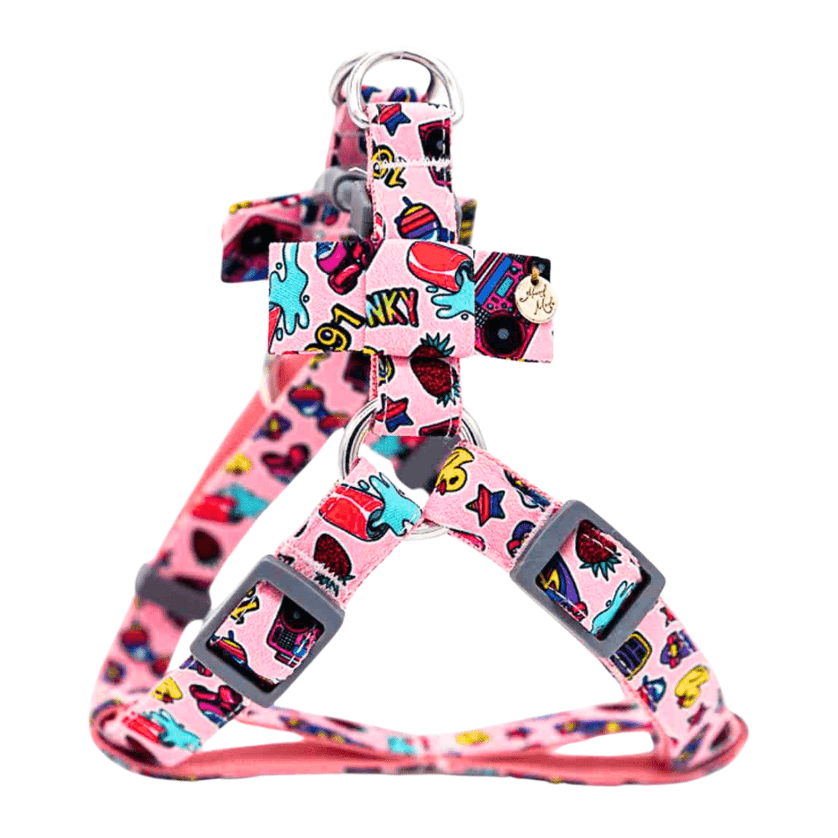 ScottiePawsPets Summer Vibes harnesses are fully adjustable to ensure the perfect fit. With a sturdy D ring for lead attachment and a sturdy, quick securing metal clip on the lead.